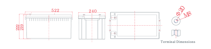 * Largo ciclo de vida, excelente capacidad de descarga de ciclo profundo.