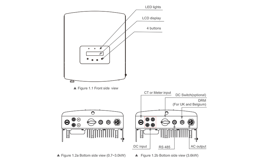 | recomendado máx. PV poder | 0,9 kW | 1,2 kW | 1.8kW | 2,3 kW | 3kW | 3,5 kW | 4kW |