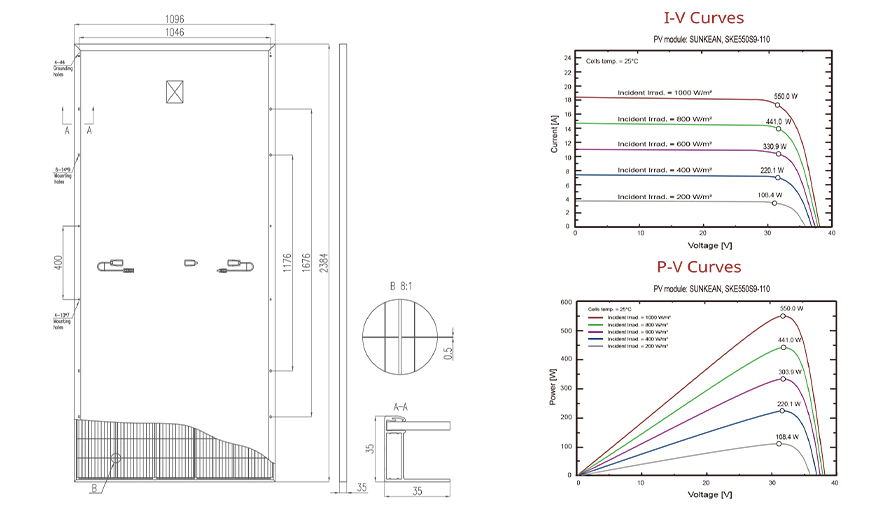 estos paneles solares se producen mediante la integración de obleas de silicio de 210 mm con tecnologías de barra colectora y celda de medio corte., la eficiencia del módulo puede llegar hasta el 21.2 %.