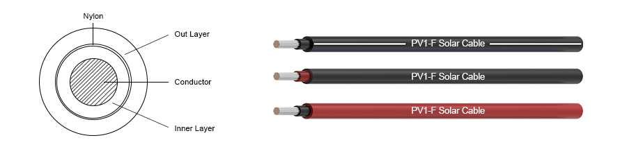 El cable solar PV1-F está fabricado con una estructura de aislamiento de tres capas de poliolefina reticulada por irradiación, nylon y poliolefina reticulada por irradiación, que es resistente a termitas y roedores. en sistemas de generación de energía fotovoltaica, se puede usar al aire libre bajo la luz del sol o directamente enterrado en el suelo.