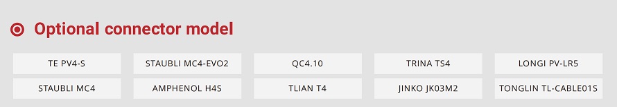 Por lo tanto, para brindar a los clientes una compra integral y garantizar la operación segura de la planta, la eficiencia de generación y los beneficios económicos. SUNKEAN proporciona las siguientes marcas de conectores que coinciden con los conectores de varias marcas principales de paneles solares.