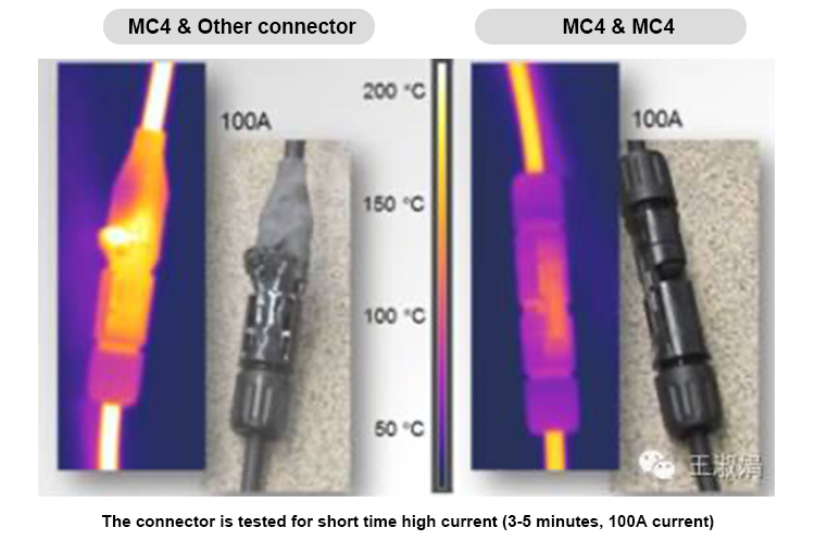 una investigación conjunta realizada por fraunhofer ISE y TUV encontró una alta probabilidad de incendios causados por conectores. la razón fundamental del incendio del conector es que la resistencia del conector aumenta bajo la condición del flujo de corriente, lo que aumenta la temperatura sube y excede el rango de temperatura que la carcasa de plástico y las partes metálicas pueden soportar,, lo que provoca un incendio. por lo tanto, la falla del conector y la causa del incendio son el resultado de la acción combinada del plástico cáscara y las partes de metal.