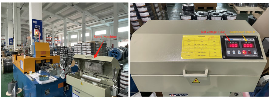 configuramos estas máquinas para ver si hay algún punto de aislamiento deficiente, como roturas, agujeros de alfiler, la máquina hará sonar una alarma si es así.
