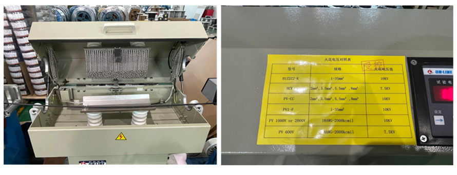 Para el popular modelo H1Z2Z2-K / 1~35mm2, el voltaje de prueba es de 10KV. Se aplican diferentes voltajes de prueba de chispa que están determinados por el área de la sección transversal del conductor y el material de aislamiento, con el voltaje apropiado especificado en el estándar de cable correspondiente.