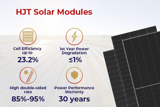 Alta eficiencia: los paneles solares HJT tienen una eficiencia de conversión del 26,07 % para módulos monorraciales y más del 30 % para módulos bifaciales, lo que los convierte en una de las tecnologías solares más eficientes de la industria.