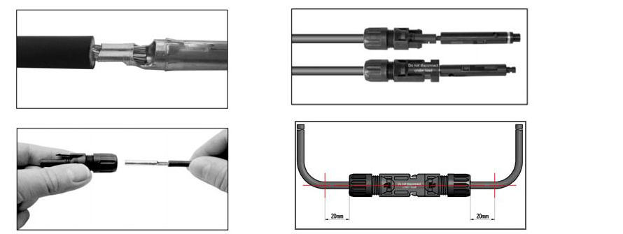 - Nunca se recomienda interconectar o "cruzar" conectores fotovoltaicos de diferentes marcas. Lo que puede causar conexiones quemadas, fallas de arco y fuego.