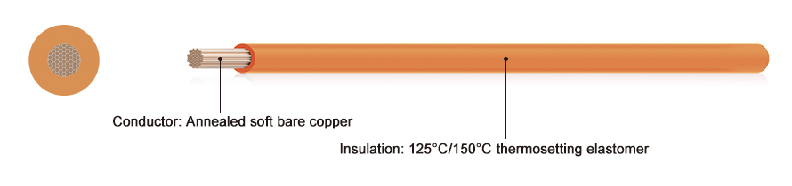 elastómero termoestable conductor Cobre desnudo recocido suave aislamiento temperatura nominal -40 ºC ~ +125 ºC, -40 ºC ~ +150°C vol nominaltage 1500v CC cuentaor ding a gb/t 25085/iso6722