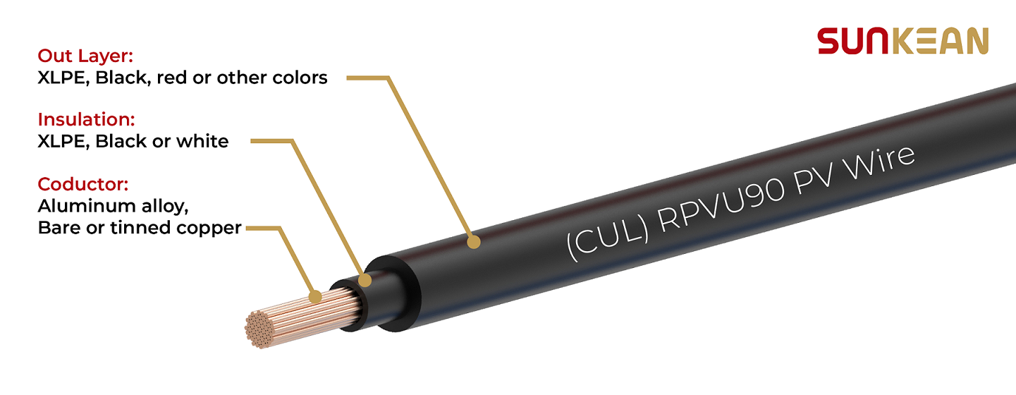 Cable fotovoltaico RPVU90 de 2 kV, 6 AWG con cobre, doble capa