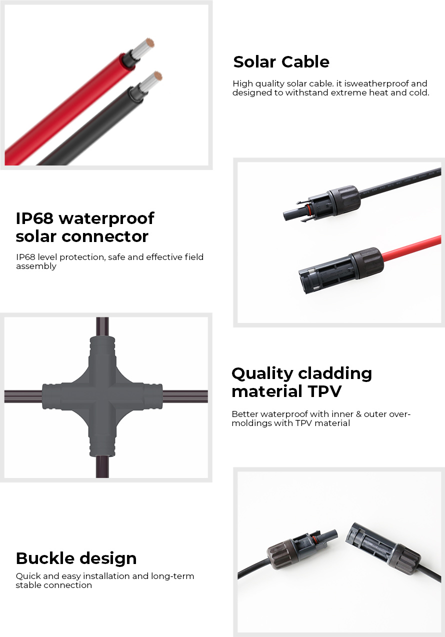 - Compatible con diferentes tamaños de cables fotovoltaicos comúnmente